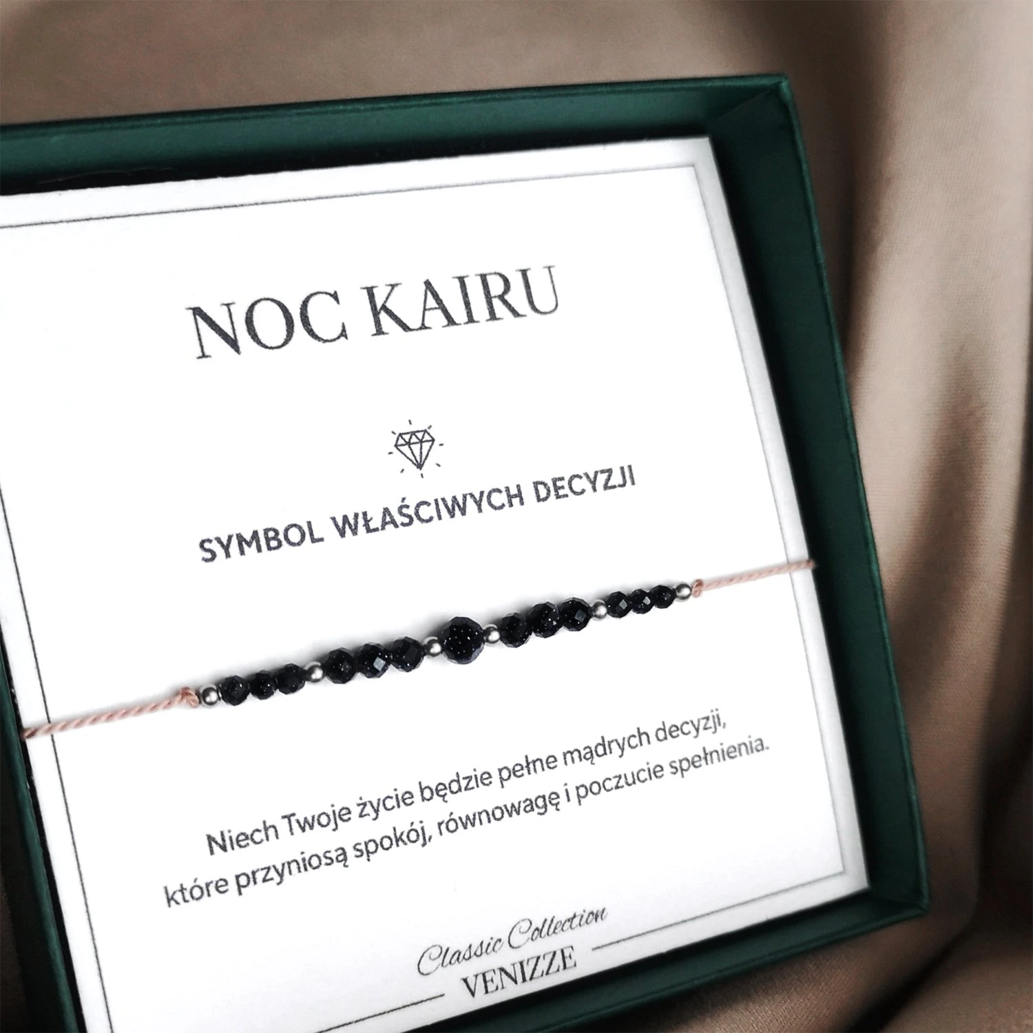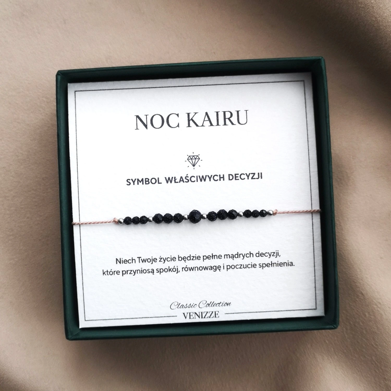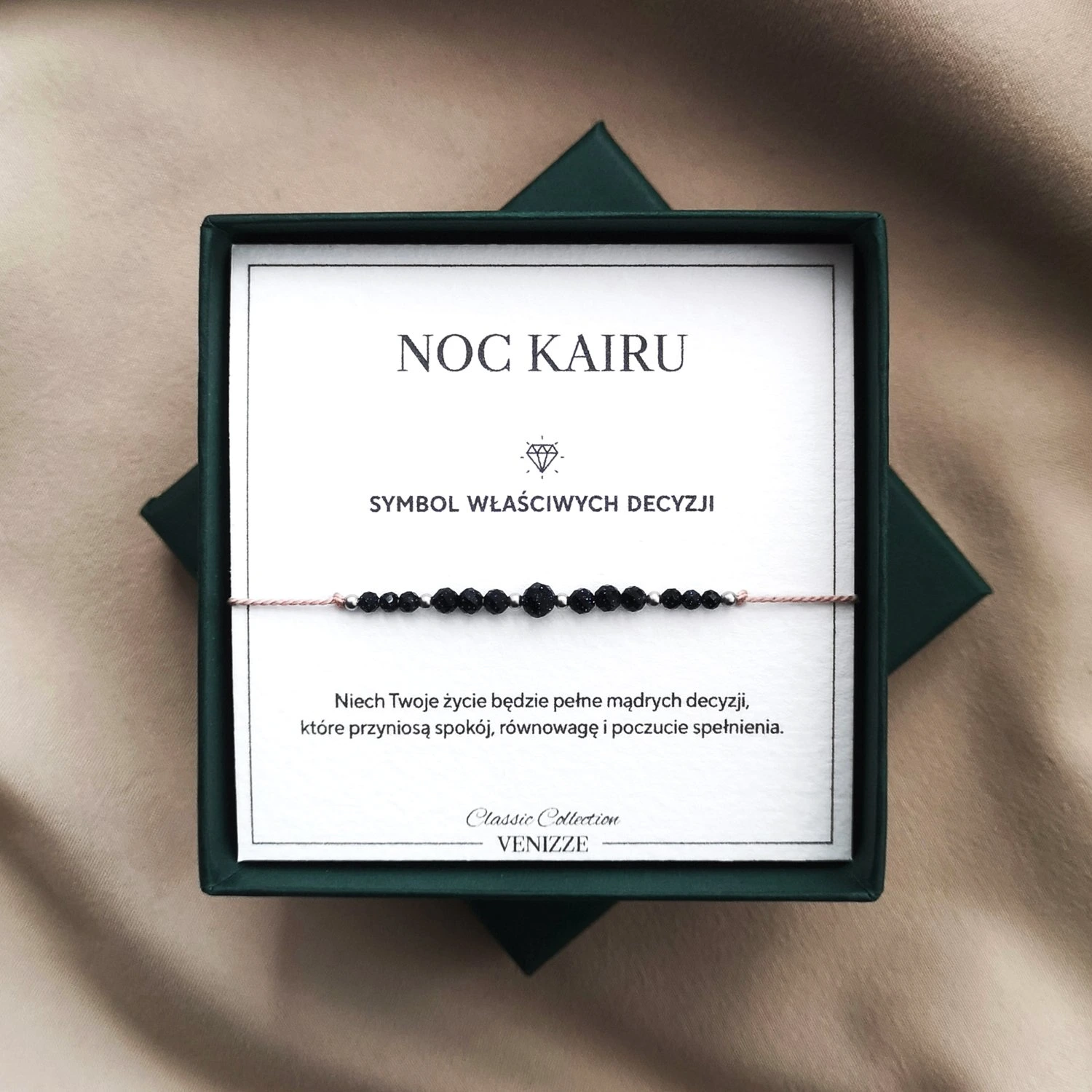 Bransoletka z kamieniami Noc Kairu na jedwabnym sznurku to wyjątkowy wybór dla osób poszukujących biżuterii, która nie tylko ozdobi, ale także przyniesie pozytywne zmiany w życiu. Kamienie Noc Kairu, znane są ze swojej głębokiej, niemal czarnej barwy z subtelnymi refleksami, które przywodzą na myśl nocne niebo pełne gwiazd. Są cenione za swoje unikalne właściwości oraz estetykę, która wyróżnia się na tle innych kamieni szlachetnych.