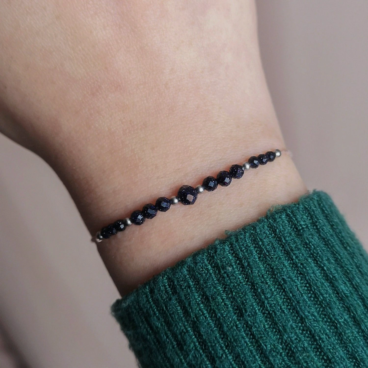 Bransoletka z naturalnych kamieni szlachetnych oraz półszlachetnych na jedwabnym sznurku została zaprojektowana z myślą o uniwersalnym rozmiarze, dzięki czemu pasuje na każdą rękę. Nie zsuwa się z dłoni, szybko ją się zakłada oraz ściąga. Posiada praktyczny stoper, który umożliwia łatwe regulowanie długości, co czyni ją wygodną i bezpieczną w noszeniu przez osoby o różnych rozmiarach nadgarstka. Bransoletka regulowana jest do 24 cm. Potrzebujesz innej długości? – Napisz do nas.