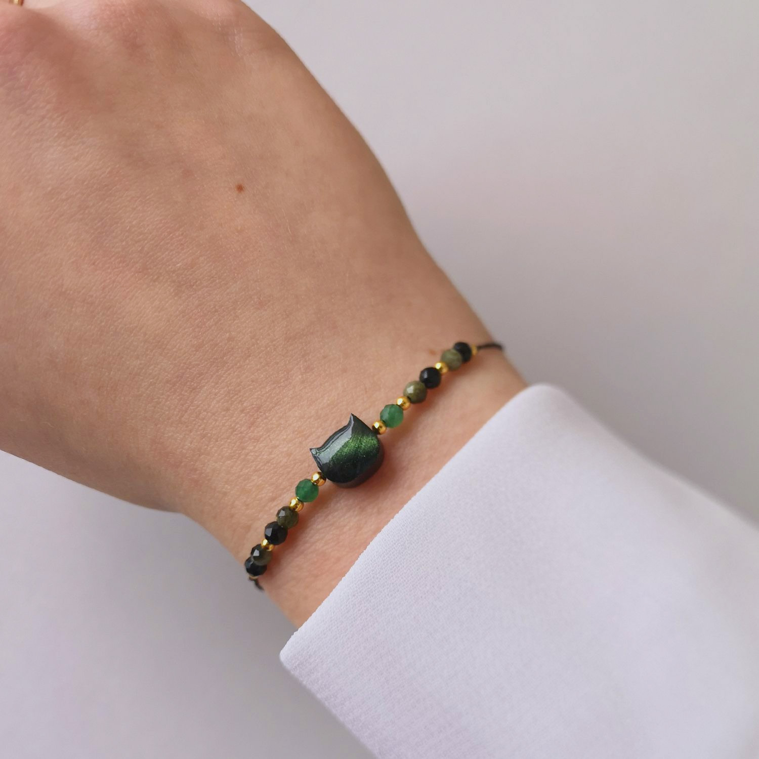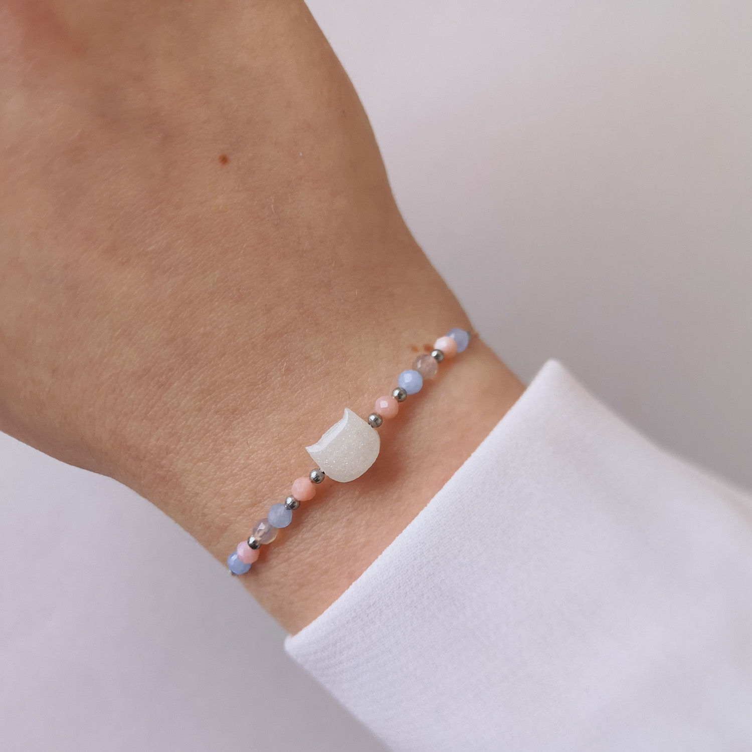 Wystarczy kilka chwil, aby stworzyć unikalny projekt. Wybierz kamienie naturalne, takie jak ametyst, turmalin czarny czy szafir, i zdecyduj o detalach, które uczynią twoją biżuterię personalizowaną jeszcze bardziej wyjątkową. Czarny kotek, a może z mieniącymi się drobinkami? Ciesz się radością tworzenia, eksperymentuj z barwami i już teraz stwórz własną bransoletkę z kotem.