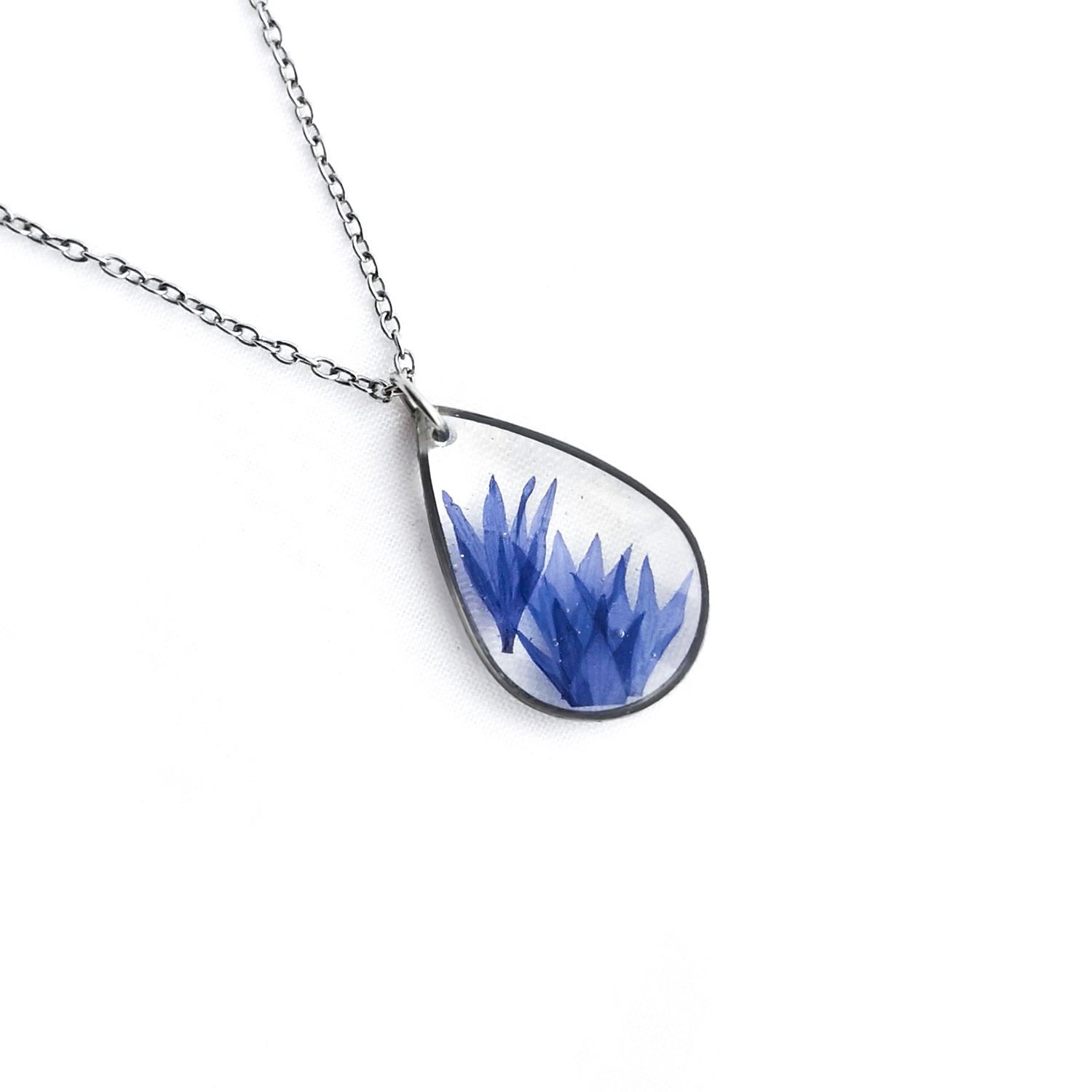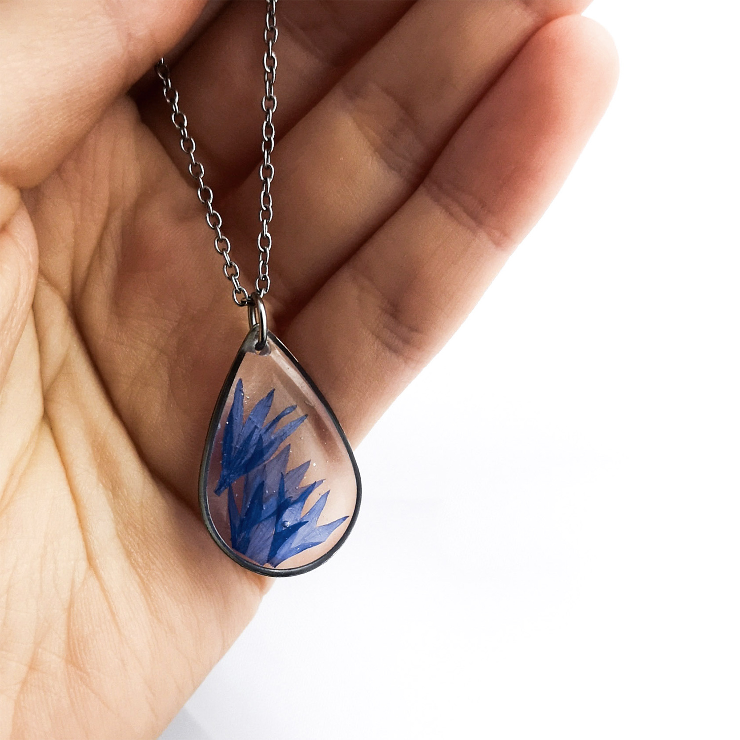 Biżuteria z chabrami – niebieskie płatki chabrów zatopione w żywicy