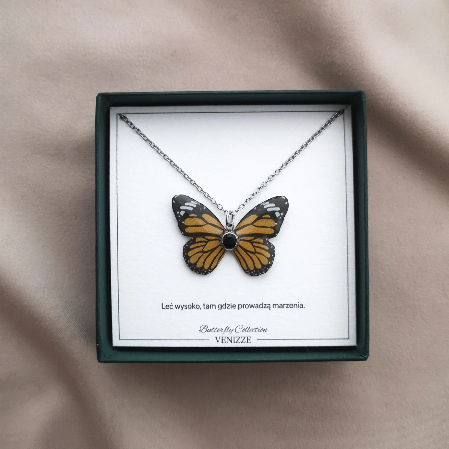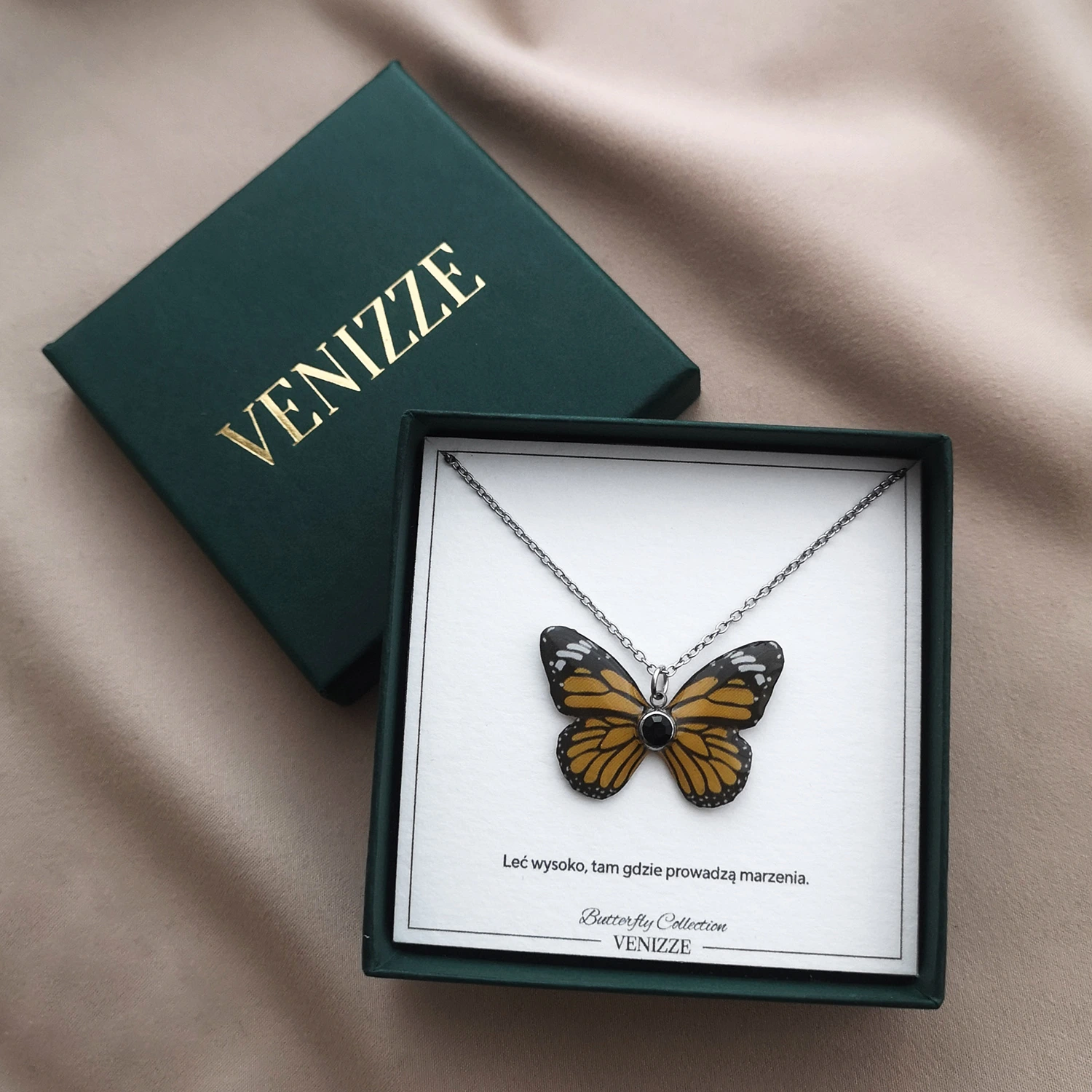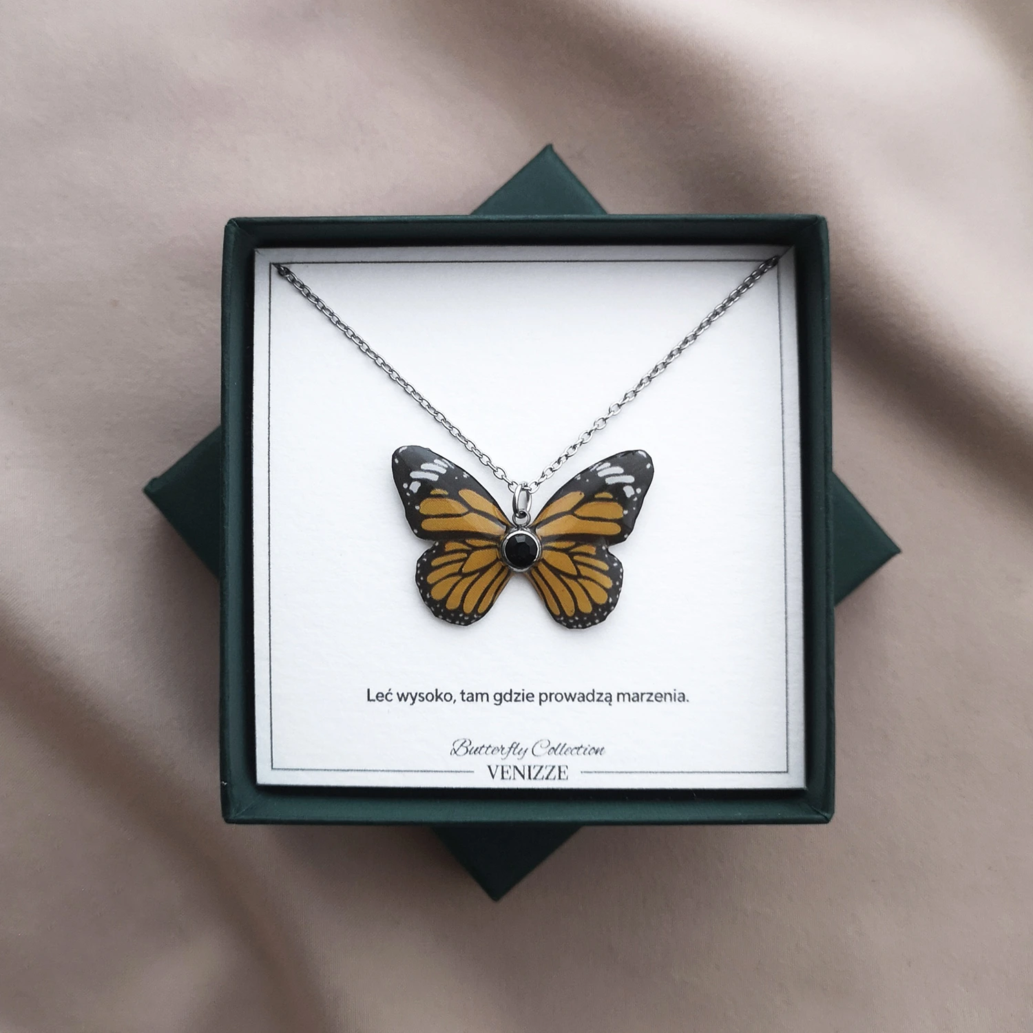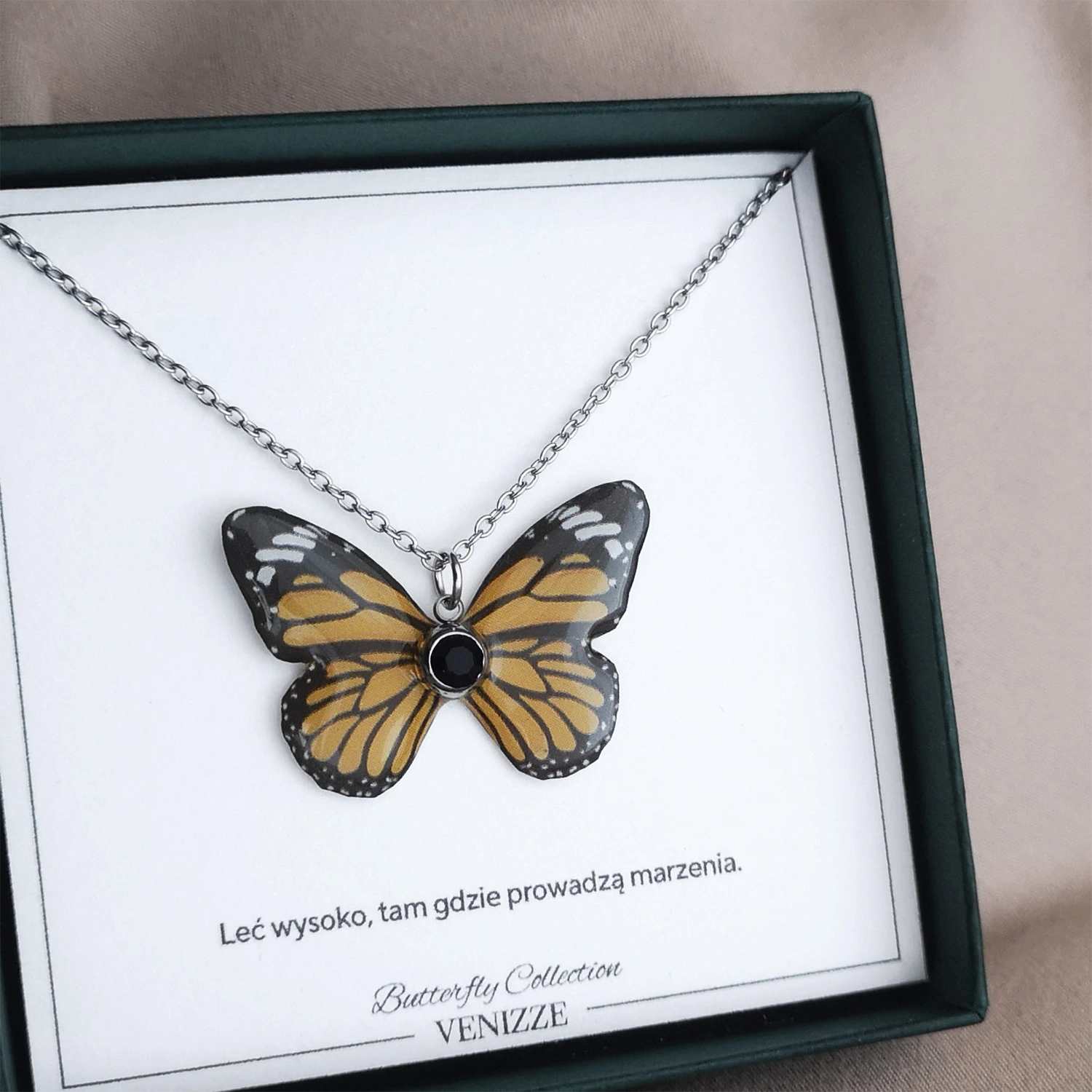 Inspiracją do stworzenia kolekcji z motylami Wings of Nature była lekkość, delikatność i piękno tych niezwykłych stworzeń. Ich barwne skrzydła oraz finezyjne kształty stały się punktem wyjścia do tworzenia unikalnych wzorów. Motyle zostały zaprojektowane tak, aby łączyć naturalne piękno z artystyczną wyobraźnią, co sprawia, że żaden naszyjnik, bransoletka, czy kolczyki nie są identyczne.