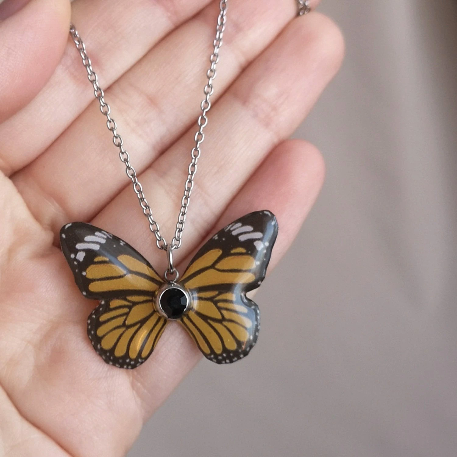Biżuteria z żywicy UV to nowoczesne rozwiązanie, które łączy trwałość i elegancję. Dzięki żywicy UV każdy detal motyla jest wyraźnie widoczny, a kolory zachowują intensywność nawet po długim czasie noszenia. Materiał chroni biżuterię przed uszkodzeniami i czynnikami zewnętrznymi, dzięki czemu kolczyki, naszyjniki, bransoletki czy pierścionki pozostają piękne na co dzień. Transparentna żywica podkreśla każdy kształt i wzór motyla, tworząc efekt subtelnej lekkości i elegancji.
