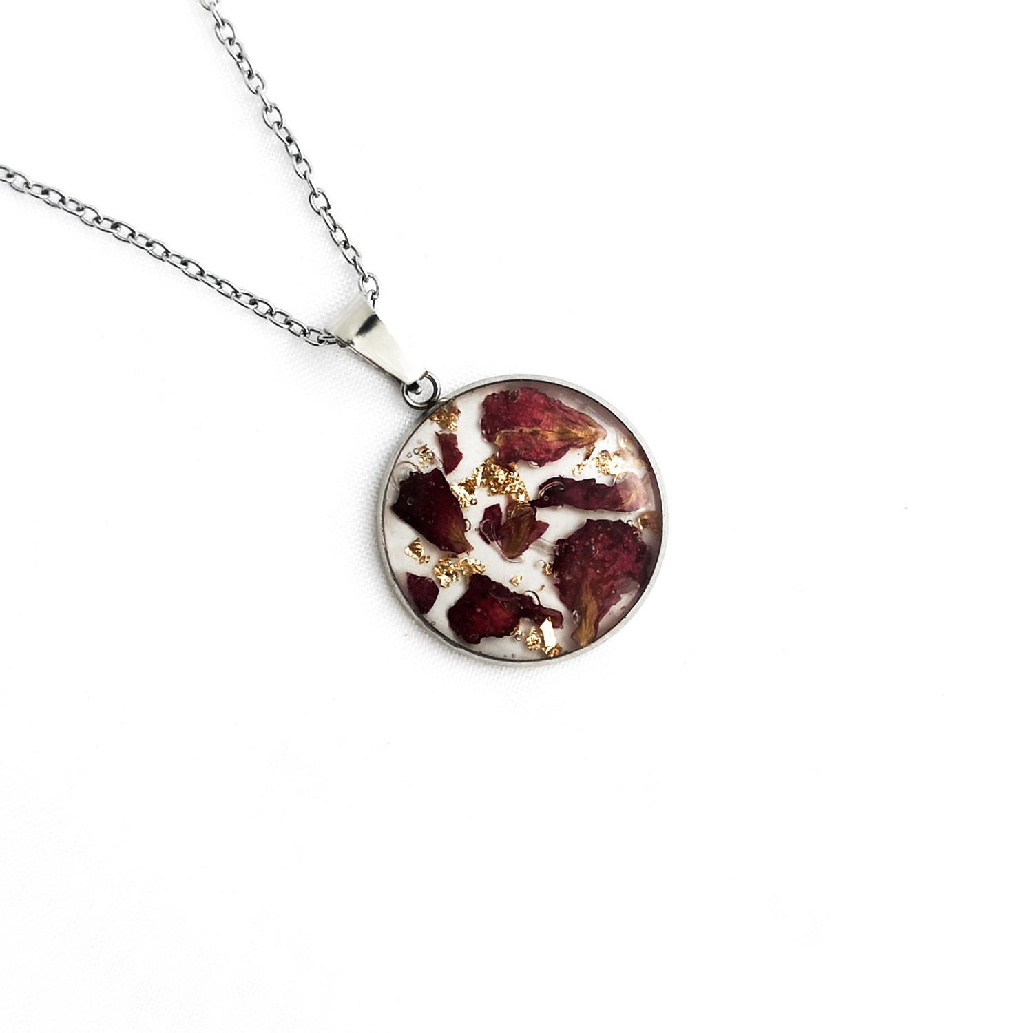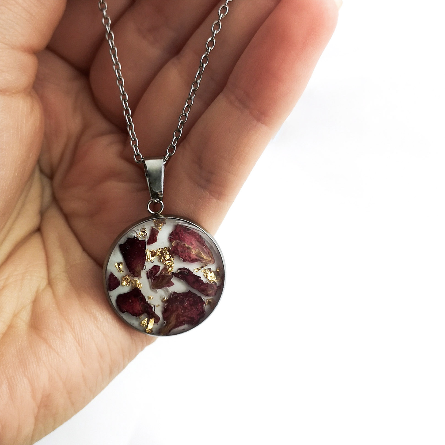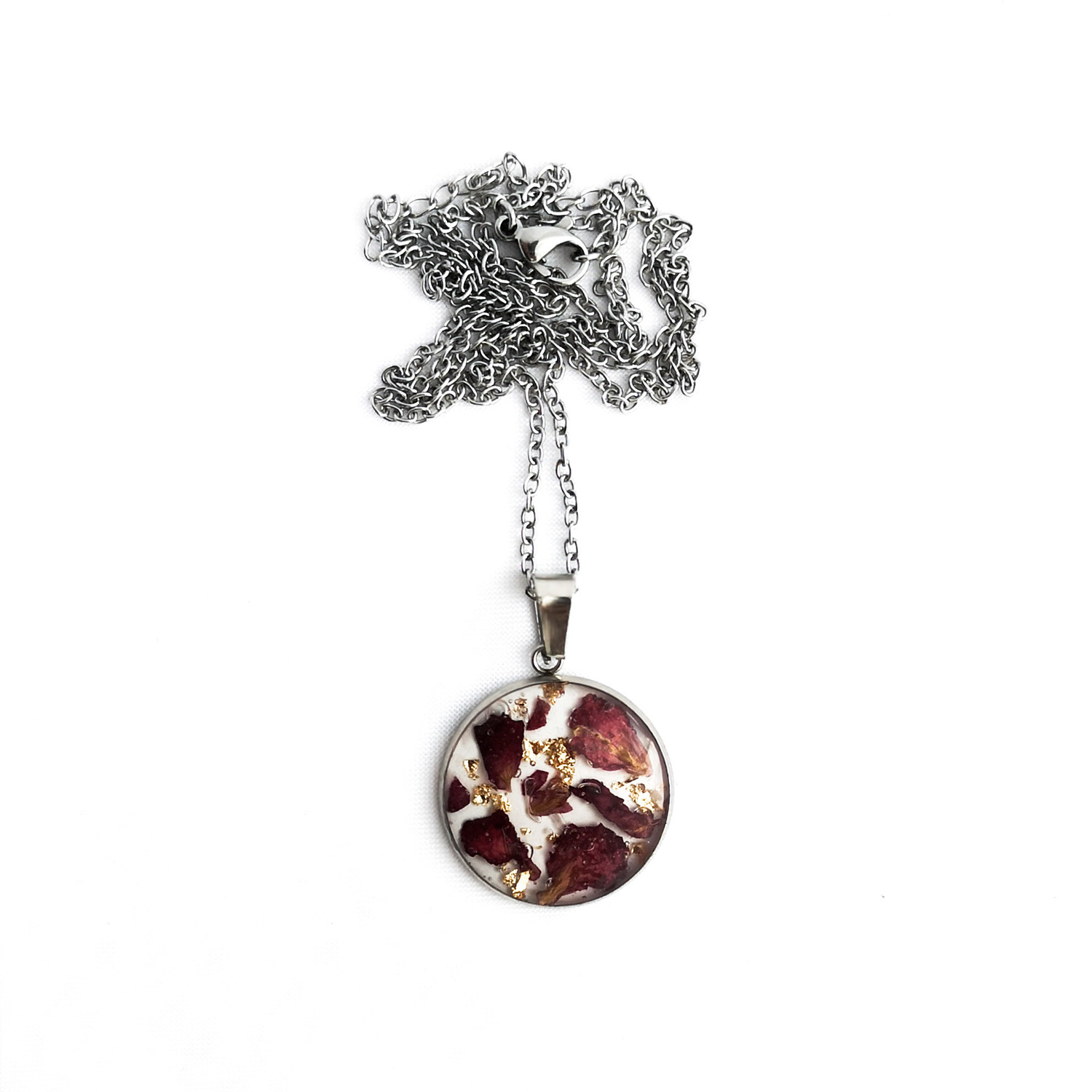 Biżuteria z różą – płatki róży zatopione w żywicy