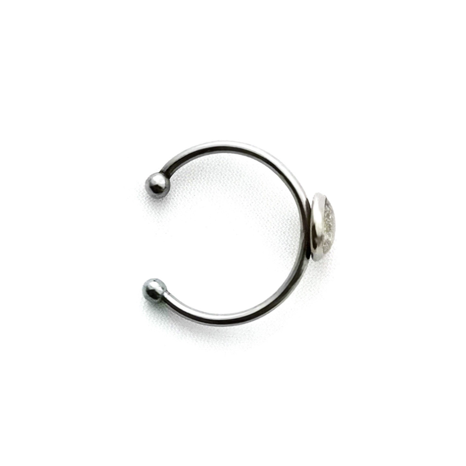 Regulowany pierścionek ze stali chirurgicznej w kształcie koła, w którym zatopiono płatek szczawika na białym tle.